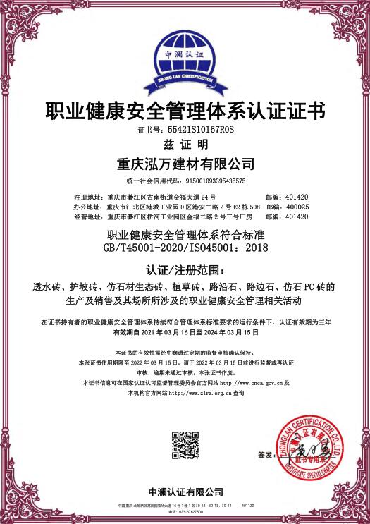 您的位置: 首頁>資質榮譽>職業健康安全管理體系認證證書